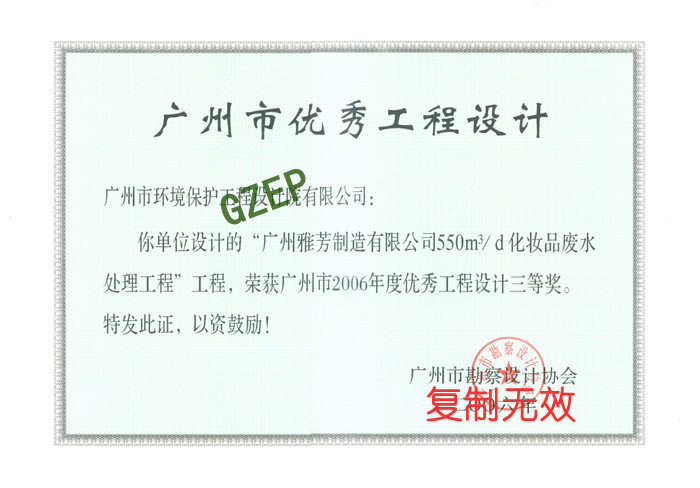 【名称】2006年度优秀工程设计三等奖奖状 (雅芳) 证书号:** 证书等级:**