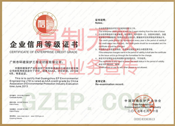 热烈庆祝我司通过中国环境保护产业协会“企业信用等级”AAA级审批认定。