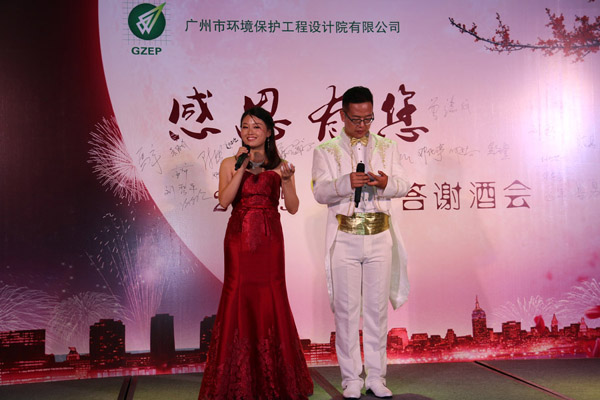 9月24日晚,由我司举办的“感恩有您”中秋答谢酒会在广州市琶洲威斯汀酒店42楼隆重举行,全司中高层以上人员欢聚一堂,共庆佳节。中华联合会华南分会、广东省环境保护产业协会、广东省工程咨询协会、广州市环境保护产业协会、广州市越秀区环境保护产业协会等领导也受邀参加了本次酒会。